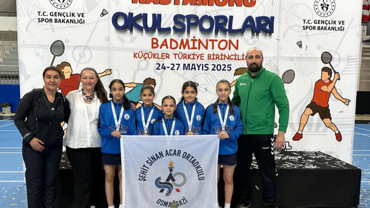 Bursa Osmangazi Belediyespor Kulübü sporcularından oluşan Şehit Sinan Acar Ortaokulu Kız Badminton Takımı, Kastamonu’da düzenlenen Okul Sporları Badminton Küçükler Türkiye Birinciliği müsabakalarında namağlup şampiyon oldu.