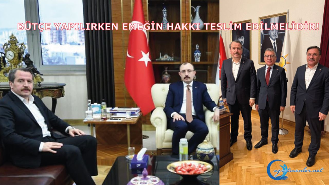 Devlet alacakları için %25,49, kamu görevlisine aktaracağı kaynak için %11+%7 artış öngörüyor. Bütçe; paylaşma, aktarma, hak verme zeminidir. Eksik olanı tamamlama, yanlış olanı telafi etme sürecidir. Ziyaretimizde kamu görevlilerinin bugün yaşadığı ve önümüzdeki yıl daha derinden yaşayacağı mali sorunları dile getirdik.
