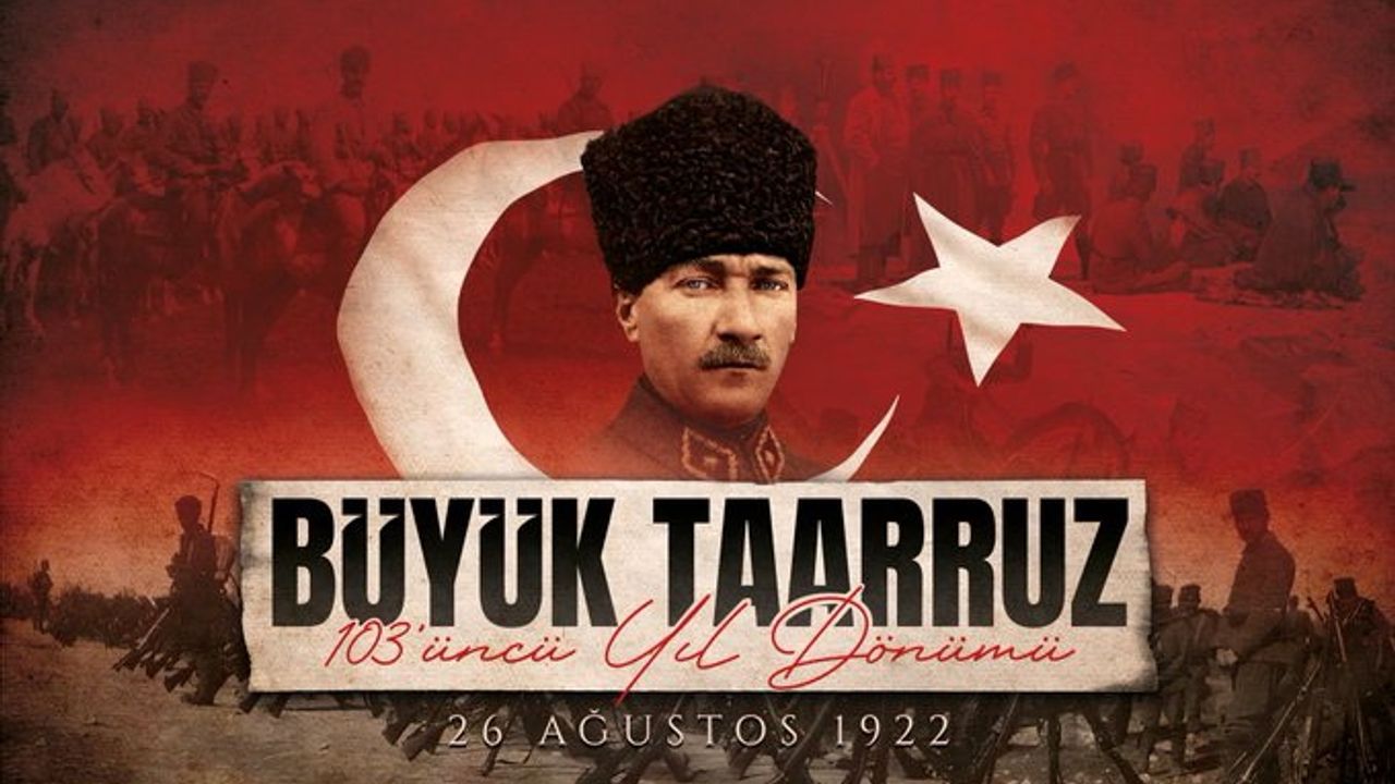 26 Ağustos 1922 tarihinde yeryüzünde benzeri görülmemiş bir büyük taaruz başlatarak “Anadolu bizimdir, bizim kalacak!” diyen Gazi Mustafa Kemal Atatürk ve kahraman ordumuzun aziz hatırası önünde daima saygı, şükran ve minnetle eğiliyoruz… Ecdadımız ve asil ordumuzun meydanlardaki muzafferliğini eğitim, bilim, spor, kültür ve sanatta daha nice zaferlerle taçlandırmak ödevimiz ve sözümüzle Büyük Taaruz ve Başkomutanlık Meydan Muharebesi’nin yıl dönümünü övünçle kutluyoruz.