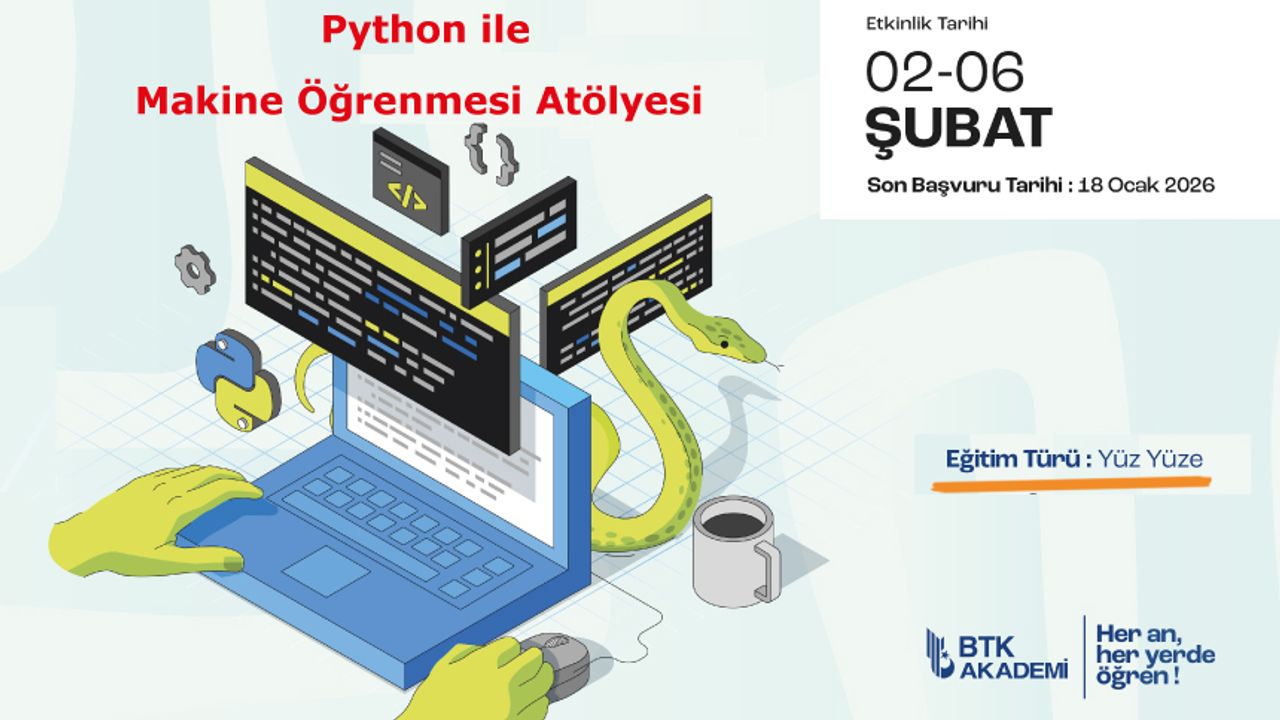 BTK Akademi’den Çanakkale Python ile Makine Öğrenmesi Atölyesi Uygulamalı içerikler, gerçek senaryolar ve güçlü teknik altyapısıyla yazılım ve yapay zekâ yolculuğuna sağlam bir adım at! Son başvuru tarihi: 18 Ocak 2026