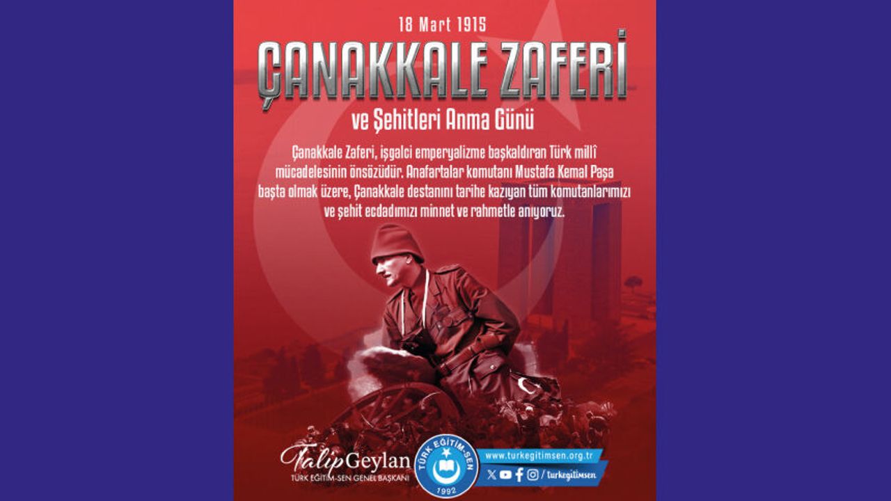 Türk Eğitim Sen Genel Başkanı Talip Geylan’ın, Çanakkale Zaferi dolayısıyla yaptığı basın açıklamasıdır.