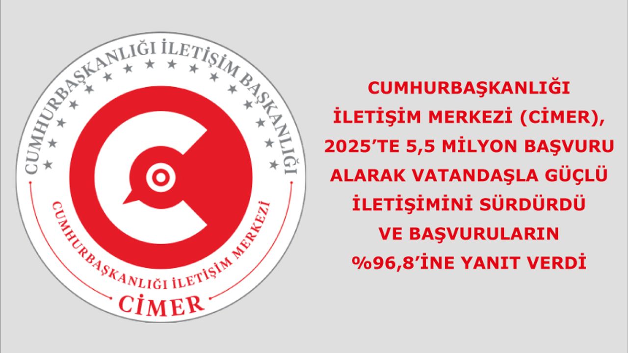 Devlet–millet iletişiminin önemli bir köprüsü olan Cumhurbaşkanlığı İletişim Merkezi (CİMER), 2025’te 5,5 milyon başvuru alarak vatandaşla güçlü iletişimini sürdürdü ve başvuruların %96,8’ine yanıt verdi. Dijitalleşme adımları ve mobil uygulama ile erişilebilirlik artarken, uluslararası iki ödül kazanıldı.
