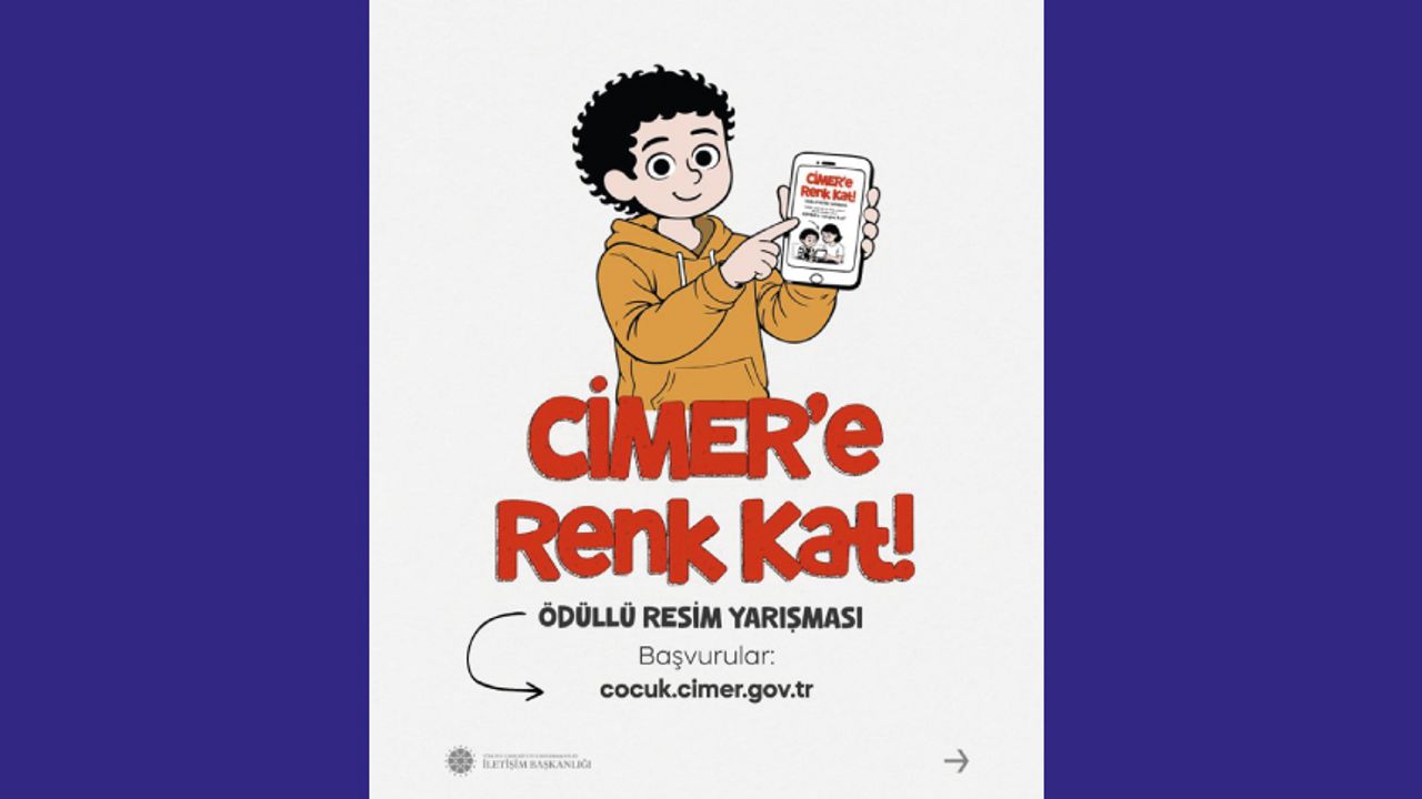 Cumhurbaşkanlığı İletişim Başkanlığımız tarafından düzenlenecek olan “CİMER’e Renk Kat” ödüllü resim yarışması ile çocuklar hayallerindeki CİMER’i resmedecek, CİMER’e renk katacak. Yarışma takvimi ve katılım şartları ile ilgili bilgi almak için: http://cocuk.cimer.gov.tr