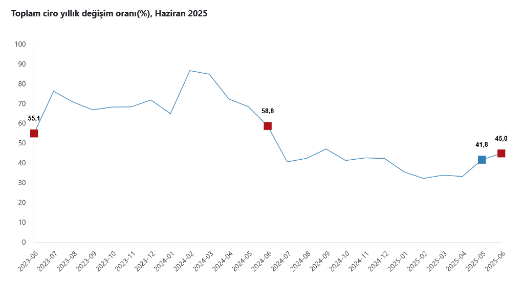 Toplam ciro yıllık değişim oranı(%), Haziran 2025
