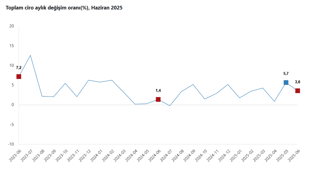 Toplam ciro aylık değişim oranı(%), Haziran 2025