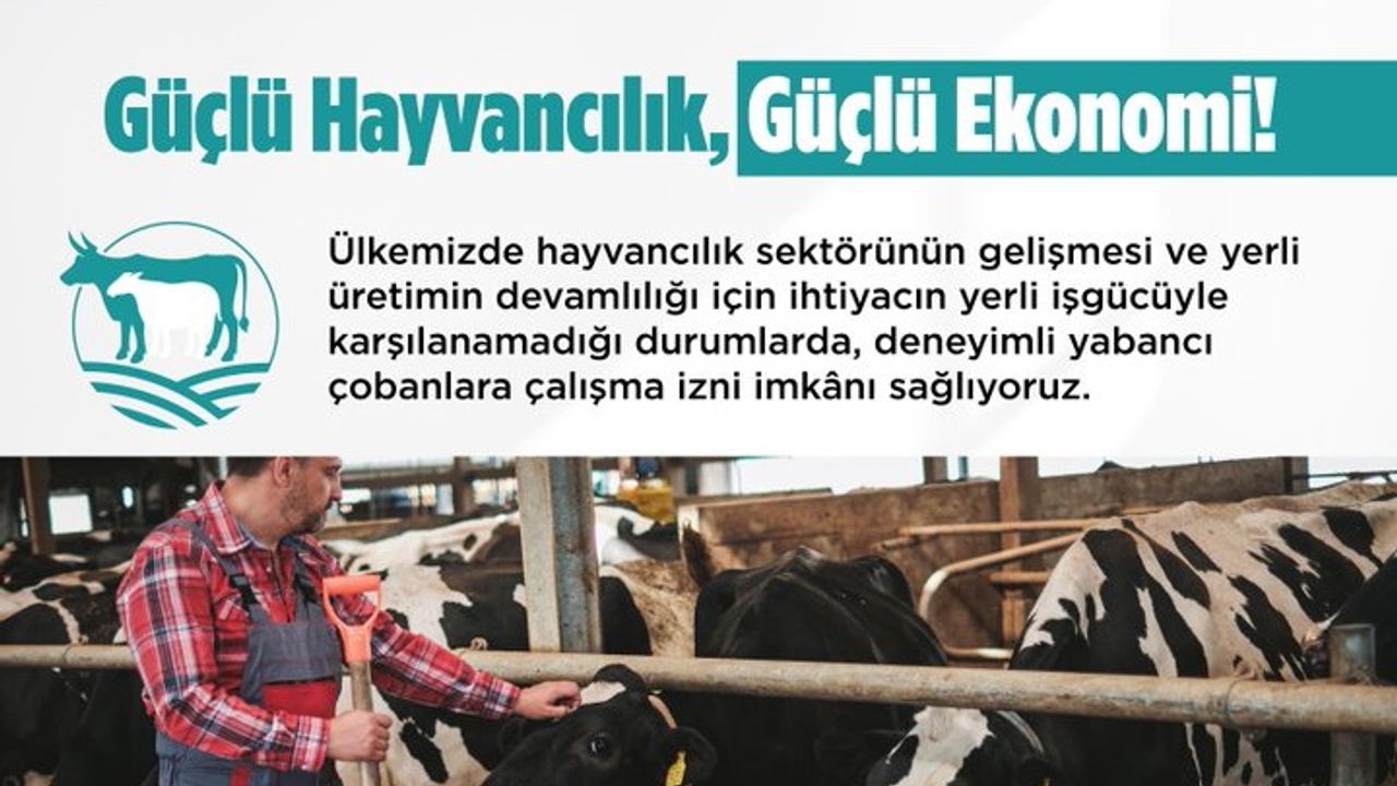 Hayvancılık işletmelerinde istihdam edilecek çoban ve hayvan bakıcıları için çalışma izni başvuruları başladı. Detaylar için https://csgb.gov.tr/uigm/duyurular/12062025/
