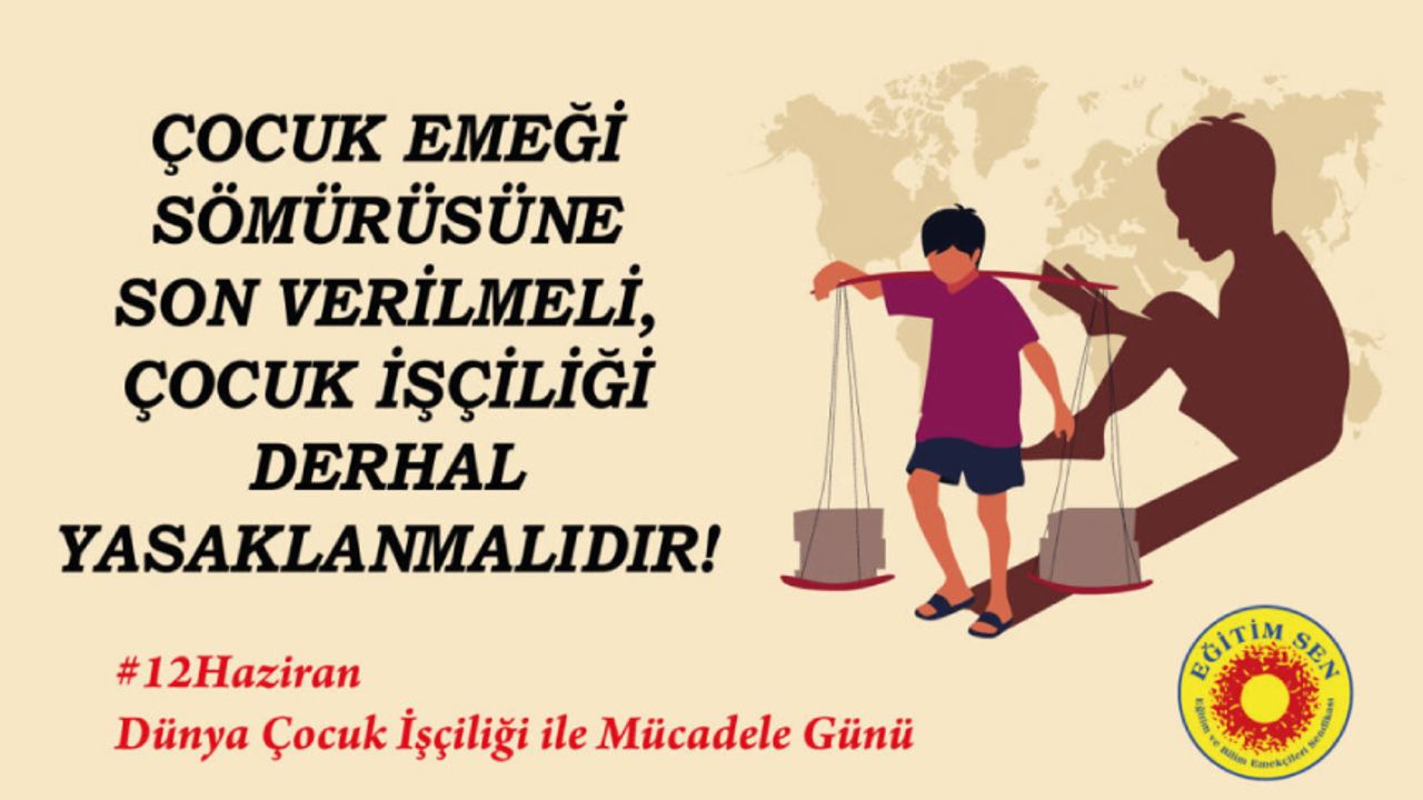 Dünyada giderek artan çocuk işçiliğine ve çocuk emeği sömürüsüne karşı farkındalık yaratmak, çocuk işçiliğine engel olmak amacıyla 12 Haziran tarihi Birleşmiş Milletler tarafından, “Dünya Çocuk İşçiliğiyle Mücadele Günü” ilan edilmiştir.