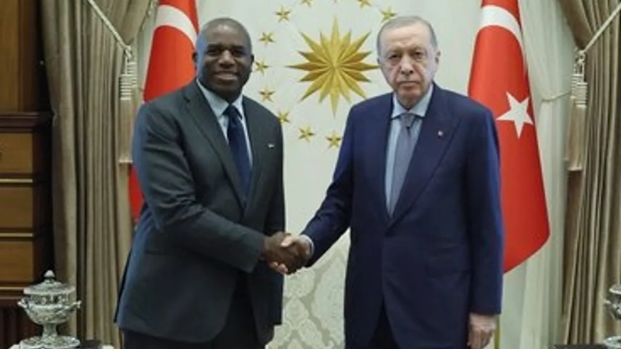 Cumhurbaşkanı Recep Tayyip Erdoğan, resmi ziyarette bulunan İngiltere Dışişleri Bakanı David Lammy’yi Cumhurbaşkanlığı Külliyesi’nde ağırladı.ANKARA (İGFA) - Cumhurbaşkanı Recep Tayyip Erdoğan, İngiltere Dışişleri Bakanı David Lammy’yi Cumhurbaşkanlığı Külliyesi’nde kabul etti.