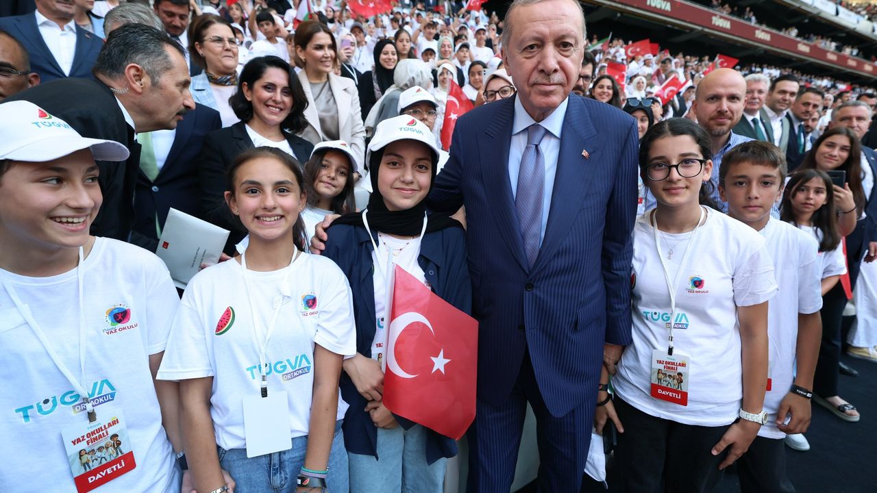 Cumhurbaşkanı Recep Tayyip Erdoğan, Tüpraş Stadyumu'nda gerçekleştirilen Türkiye Gençlik Vakfı (TÜGVA) Yaz Okulları Finali Programı'ndaki konuşmasına gençleri selamlayarak başladı.