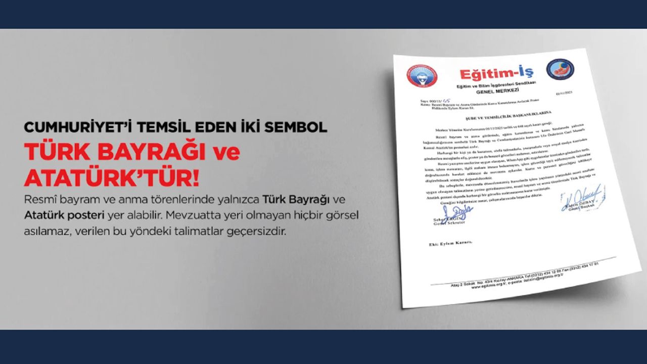 Bu sebeplerle, mevzuatla düzenlenmemiş hususlarda işlem yapılması yönündeki resmi usullere uygun olmayan talimatların yerine getirilmemesine, resmî bayram ve anma törenlerinde Türk Bayrağı ve Atatürk posteri dışında herhangi bir görselin asılmamasına karar verilmiştir.