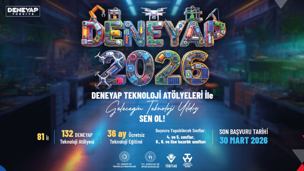 Teknoloji Atölyesi’nde hayata geçirilen program ile 36 ay boyunca ücretsiz teknoloji eğitimi alacak çocuklarımız geleceğin teknoloji yıldızları olma yolunda ilerliyor! Bu yolculuğun bir parçası olmak, #MilliTeknolojiHamlesi'nin gücüne güç katmak için başvurularınızı bekliyoruz! http://deneyap.org Son Başvuru Tarihi: 30 Mart 2026