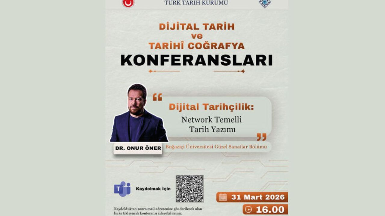 Çevrim içi düzenlenen Dijital Tarih ve Tarihî Coğrafya Konferanslarımıza Dr. Onur Öner konuk oluyor. Dijital Tarihçilik: Network Temelli Tarih Yazımı 31 Mart 2026 16.00 Konferansa kayıt yaptırmak için: https://b.ayk.tr/dijitaltarihcilik