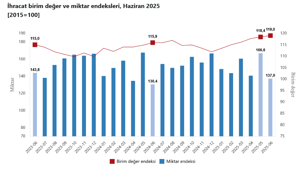 İhracat birim değer ve miktar endeksleri, Haziran 2025