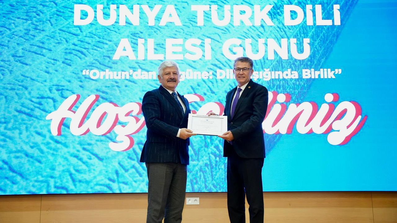 Türk Dil Kurumu Başkanı Prof. Dr. Osman MERT, Sağlık Bilimleri Üniversitesi tarafından 8 Aralık 2025’te Ankara Gülhane Külliyesi Prof. Dr. Cevdet Erdöl Konferans Salonu’nda düzenlenen “Dünya Türk Dili Ailesi Günü” programına katıldı. Etkinlikte, Sağlık Bilimleri Üniversitesi Rektörü Prof. Dr. Kemalettin AYDIN ile akademisyenler, öğrenciler ve çok sayıda davetli de hazır bulundu. Etkinlik kapsamında gerçekleştirilen “Orhun’dan Bugüne: Dilin Işığında Birlik” başlıklı panelde Prof. Dr. Osman MERT, “Türk Dünyasında Ortak Alfabe Çalışmaları” konusunda görüşlerini dile getirdi. Panelde ayrıca; Prof. Dr. Musa Kazım ARICAN, Prof. Dr. Serkan Emre EROĞLU ve Prof. Dr. Ali YAKICI da katılımcılarla bilgilerini paylaştı. Etkinlik, müzik dinletisi ve teşekkür belgelerinin takdimi ile sona erdi.