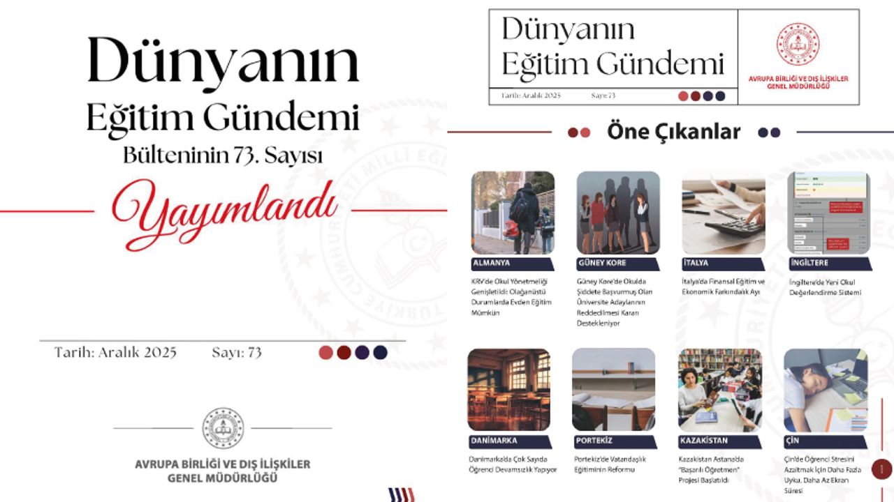 Genel Müdürlüğümüzce hazırlanan “Dünyanın Eğitim Gündemi” e-bülteninin 73. sayısı yayımlandı! Keyifli okumalar dileriz. Bültenin tüm sayılarına erişebileceğiniz bağlantılar için