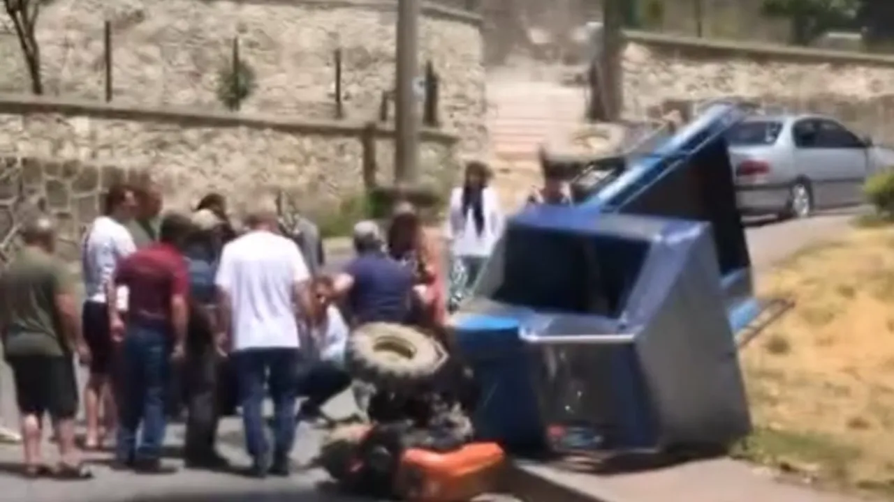 Düzce’nin Akçakoca ilçesinde meydana gelen kazada, pat pat olarak bilinen tarım aracı devrildi. Kazada 1 kişi yaralandı.Sefer DEMİR / DÜZCE (İGFA) - Edinilen bilgilere göre, ilçedeki Salı Pazarı’nın üst caddesinde bayır aşağı inen pat pat aracı, sürücüsünün direksiyon hakimiyetini kaybetmesi sonucu kontrolden çıkarak sete devrildi. Kazada araç sürücüsü yaralandı.