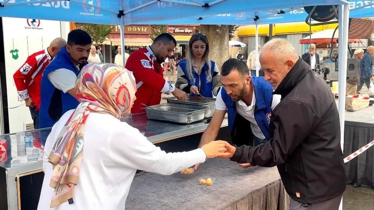 Düzce'de 19 Eylül Gaziler Günü dolayısıyla düzenlenen etkinlikler kapsamında Düzce Belediyesi de vatandaşlara lokma ikramında bulundu.Sefer DEMİR / DÜZCE (İGFA) - Düzce Belediyesi Sosyal Yardım İşleri Müdürlüğü ekipleri, Merkez Büyük Camii önünde Cuma namazı çıkışında bin 500 kişilik lokma dağıttı.