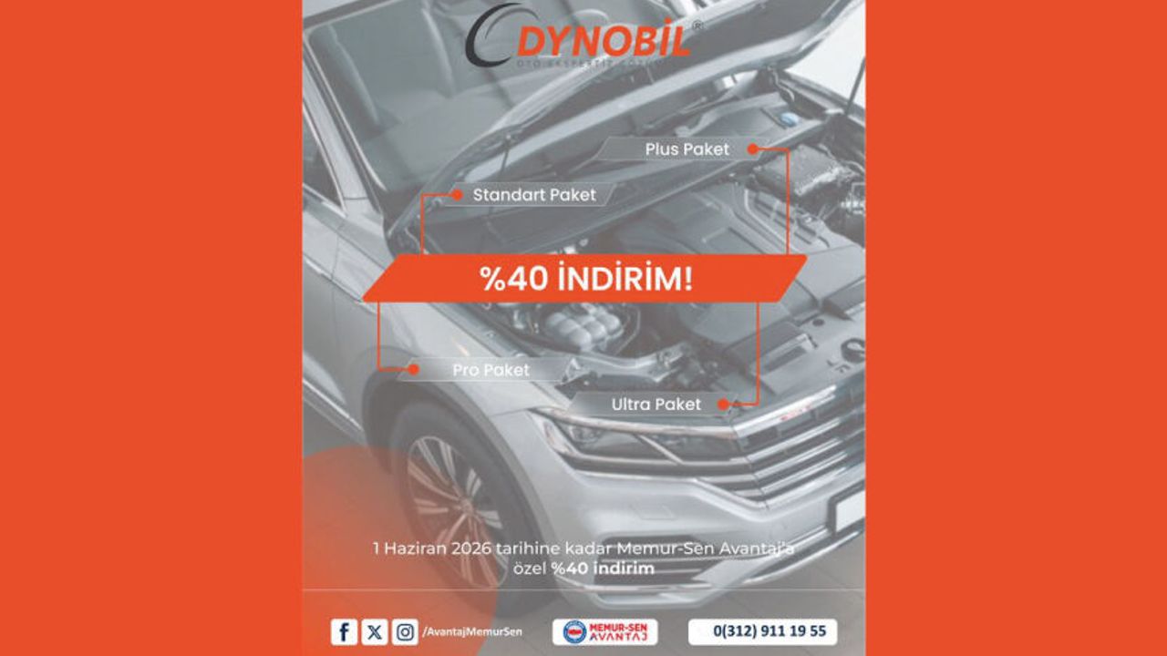 Dynobil Oto Ekspertiz'den Üyelerimize Özel Kampanya. Sizlerle birlikte MemurSenAvantaj Dünyası hergün büyümeye devam ediyor. Dynobil Oto Ekspertiz'den MemurSenAvantaj Üyelerine Özel %40 indirim ve ek hizmet avantajları. Kampanya hakkında detaylı bilgilere Kimlik/Karekod/Akaryakıt sektöründen ulaşabilirsiniz. Bu kampanyada ki indirim oranı 1 Haziran 2026 tarihine kadar geçerlidir. Ülkemiz genelinde 238 aktif bayii ile MemurSenAvantaj Dünyasında yer alan Dynobil Ailesine işbirliği için teşekkür ediyoruz. #MemurSenAvantaj #AvantajMemurSen