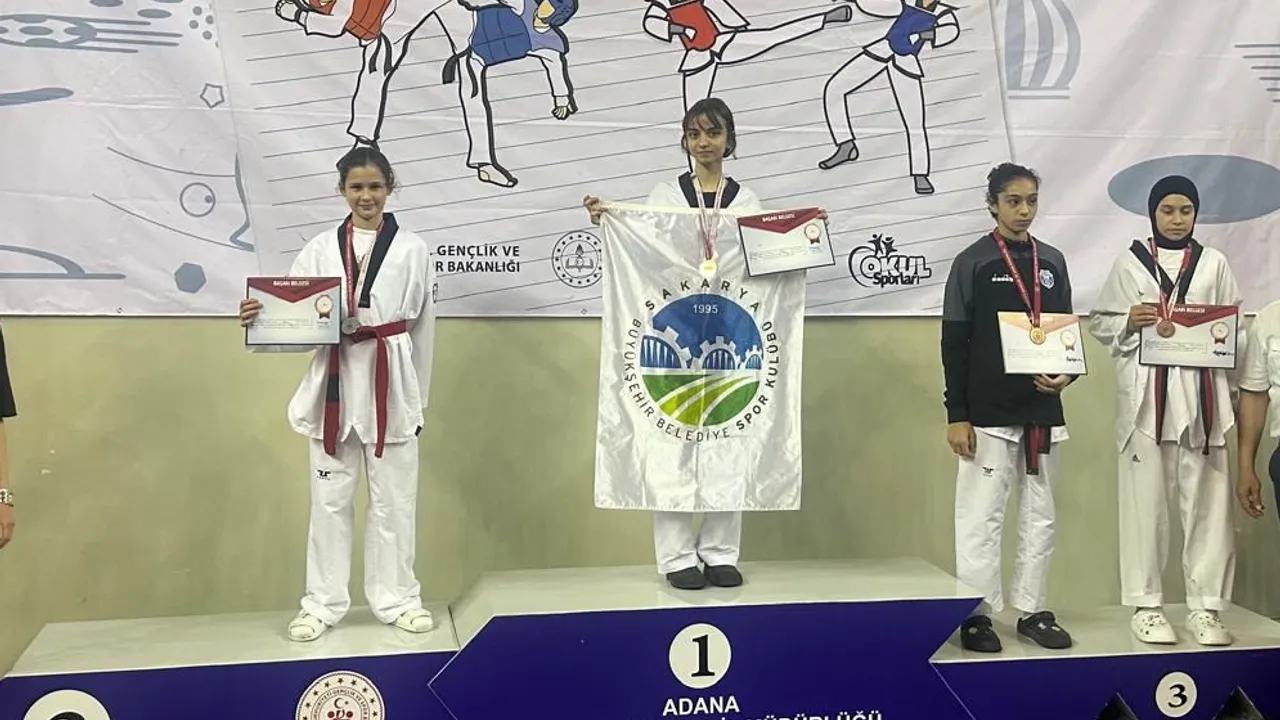 Sakarya Büyükşehir Belediyesi Taekwondo sporcularından Ecrin Yılmaz, Adana’da düzenlenen Küçükler, Yıldızlar ve Gençler Türkiye Okul Sporları’nda tüm rakiplerini geride bırakarak Türkiye şampiyonu oldu.SAKARYA (İGFA) - Sakarya Büyükşehir Belediyesi Spor Kulübü Taekwondo sporcusu Ecrin Yılmaz, 6 ve 8 Mayıs tarihleri arasında Adana’da düzenlenen Küçükler, Yıldızlar ve Gençler Türkiye Okul Sporlarında mindere çıktı.