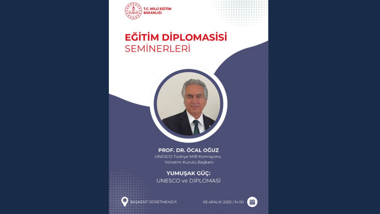 Eğitim Diplomasisi Seminerleri Başlıyor! MEB Avrupa Birliği ve Dış İlişkiler Genel Müdürlüğü tarafından “Eğitim Diplomasisi Seminerleri” düzenlenecektir. Tarih: 05 Aralık 2025, Cuma Saat: 14.00 Konum: Başkent Öğretmenevi – Hitit Salonu Programa tüm ilgililer davetlidir.