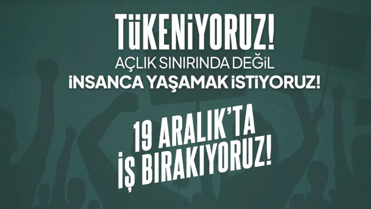 Birleşik Kamu-İş'e bağlı sendikalarımızla birlikte, AKP iktidarının emekçiyi yoksullaştıran, sermayeyi koruyan ekonomi politikalarına karşı; insanca yaşam, adil ücret ve hakça paylaşım talebiyle 19 Aralık’ta üretimden gelen gücümüzü kullanıyor, iş bırakıyoruz.