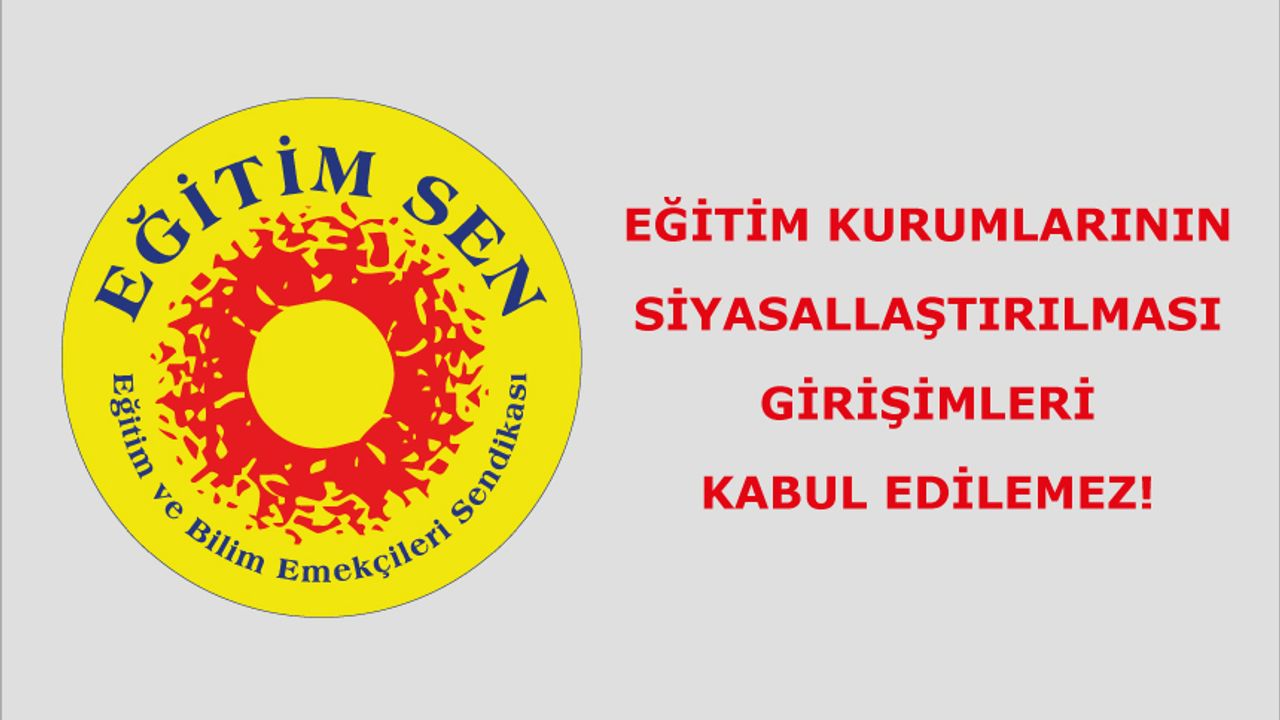 Eğitim Sen olarak eğitim kurumları başta olmak üzere, tüm kamu kurumlarının siyasallaştırılmasına yönelik her türlü girişimi reddediyoruz. Resmî dayanağı olmayan hiçbir talimatın uygulanamayacağını hatırlatıyoruz. Okul yöneticilerini, sadece Bakanlık tarafından yazılı biçimde gönderilen, yasalara ve anayasaya aykırı olmayan resmî genelgelere göre hareket etmeye çağırıyoruz.