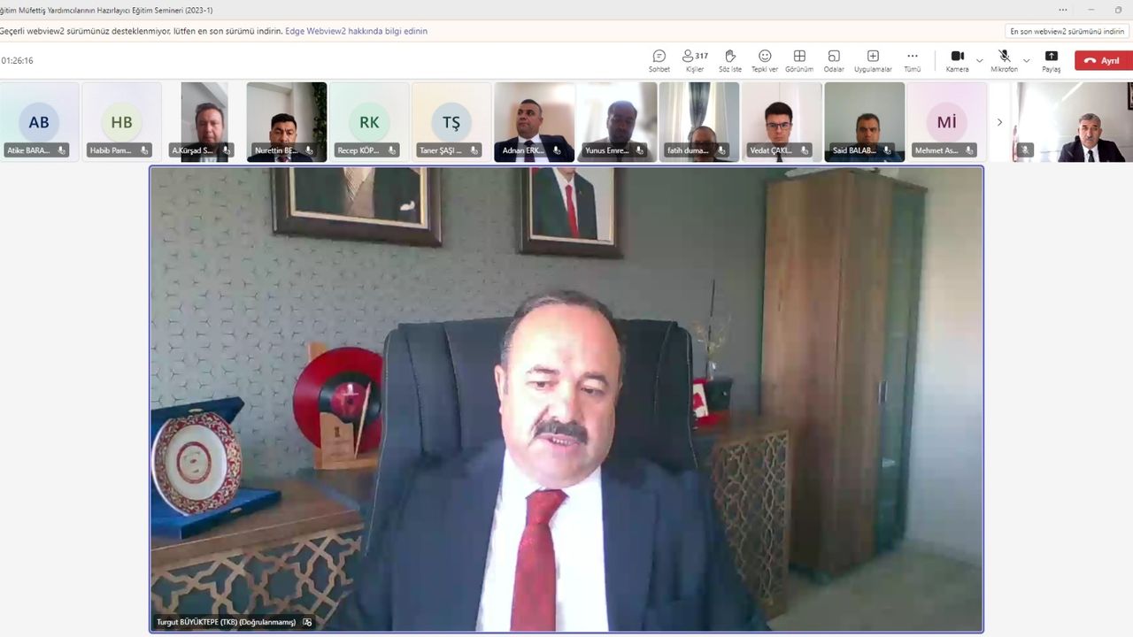Microsoft Teams Uygulaması üzerinden çevrim içi olarak düzenlenen seminerin açılış konuşmasında Teftiş Kurulu Başkan Yardımcısı Sayın Turgut BÜYÜKTEPE, katılımcıları selamladıktan sonra müfettişlik mesleğinin önemine vurgu yaparak, eğitim müfettiş yardımcıları ile hazırlayıcı eğitim programında bir araya gelmekten duyduğu memnuniyeti dile getirdi. Eğitim sistemi açısından denetimin önemine ve fonksiyonlarına değinen Sayın BÜYÜKTEPE, müfettişlerin görevlerini yerine getirirken Denetim Görevlilerinin Uyacakları Mesleki Etik ve Davranış İlkeleri Hakkında Yönetmelik'e azami özen göstermelerini, mesleğin saygınlığını koruyarak güven duygusunu sarsacak davranışlardan uzak durmaları gerektiğini sözlerine ekledi. Hazırlayıcı eğitim seminerinin içeriği hakkında bilgi vererek, mesleki formasyona katkıda bulunmasını temenni etti. Çeşitli üniversitelerden ve kamu kurumlarından eğitim görevlisi olarak katkılarını esirgemeyen değerli akademisyenlere, eğitim görevlilerine ve seminerin gerçekleştirilmesinde emeği geçen herkese teşekkür ederek sözlerini tamamladı.
