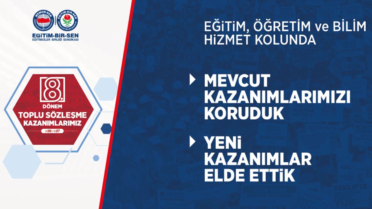 8. Dönem Toplu Sözleşme’de eğitim, öğretim ve bilim hizmet kolunda elde ettiğimiz kazanımlar: