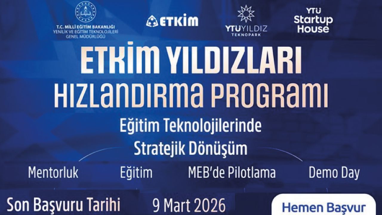 YTÜ Yıldız Teknopark ve Millî Eğitim Bakanlığı Yenilik ve Eğitim Teknolojileri Genel Müdürlüğü (YEĞİTEK) iş birliğiyle hayata geçirilen ETKİM Yıldızları Hızlandırma Programı, eğitim ekosistemine değer katacak yenilikçi ve yüksek etki potansiyeline sahip Eğitim Teknolojileri girişimlerini desteklemek için başlıyor.