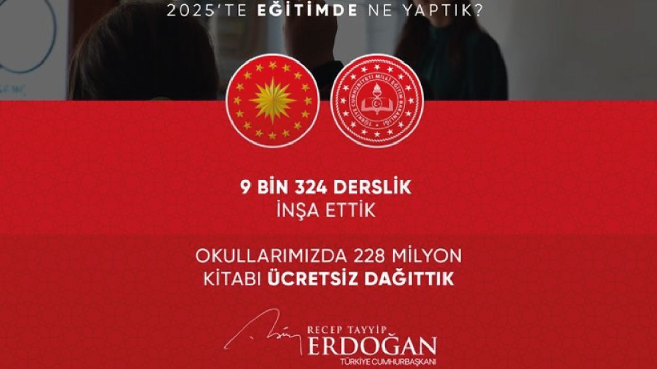 Eğitimde 2025 yılı içerisinde 9.324 derslik inşa ettik.