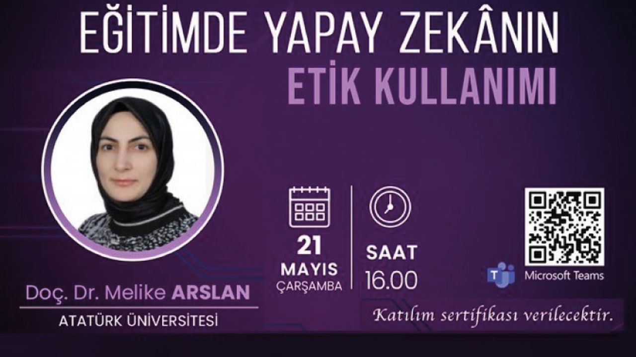 “Dijital Beceri Eğitimleri” Kapsamında Eğitimde Yapay Zekanın Etik Kullanımı Çevrim İçi Eğitimlerimiz ve Atölyelerimiz Devam Ediyor” Bağlantı: https://meb.ai/3Af3So