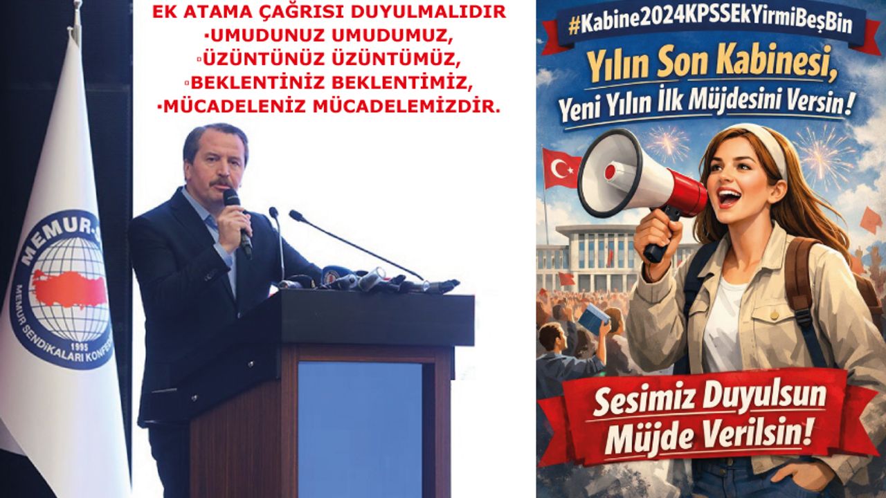 Ek atama çağrısı duyulmalıdır Yılın son kabine toplantısı yeni yılın ilk müjdesini versin diye çağrıda bulunan #Kabine2024KPSSEkYirmiBeşBin hashtag çalışması ile seslerini duyurmaya çalışan meslektaşlarım,