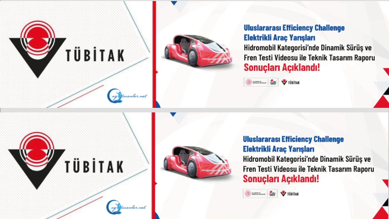 TEKNOFEST kapsamında düzenlenen Uluslararası Efficiency Challenge Elektrikli Araç Yarışları Hidromobil Kategorisi’nde Dinamik Sürüş ve Fren Testi Videosu ile Teknik Tasarım Raporu sonuçları açıklandı. Video ve Rapor değerlendirmeleri sonucunda başarılı olan takımlar, finalist olarak yarışmaya katılmaya ve pistte yarışmaya hak kazandılar.