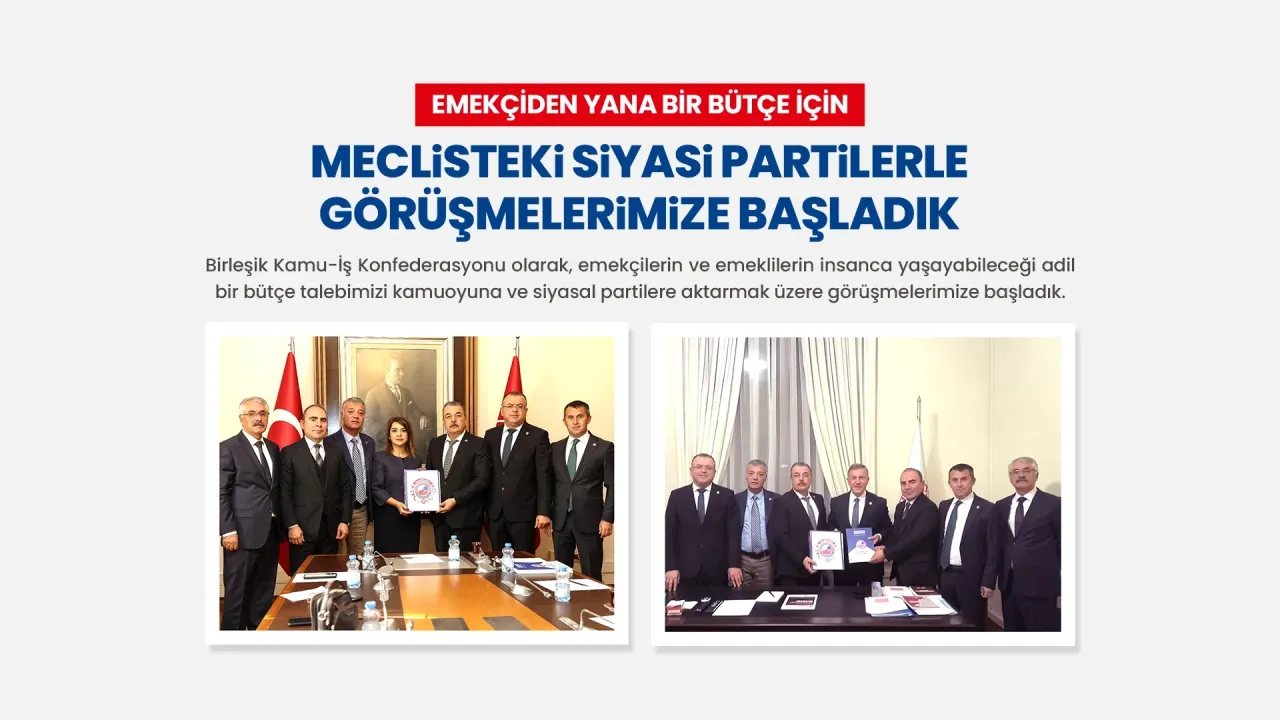 Birleşik Kamu-İş Konfederasyonu olarak, kamu emekçilerinin ve emeklilerin insanca yaşayabileceği adil bir bütçe için hazırladığımız raporumuzu ve yasa değişikliği taleplerimizi mecliste bulunan siyasi partilere ilettik.