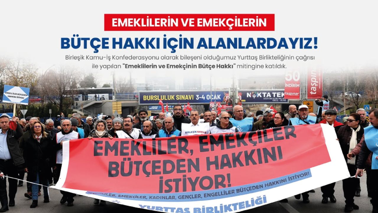 Birleşik Kamu-İş Konfederasyonu olarak bileşeni olduğumuz Yurttaş Birlikteliğinin çağrısı ile yapılan "Emeklilerin ve Emekçinin Bütçe Hakkı" mitingine katıldık. Ankara Tandoğan Meydanı'nda gerçekleştirilen ve on binlerce emekli ve emekçinin katıldığı mitingde, Konfederasyon Genel Başkanımız Orhan Yıldırım da söz aldı.