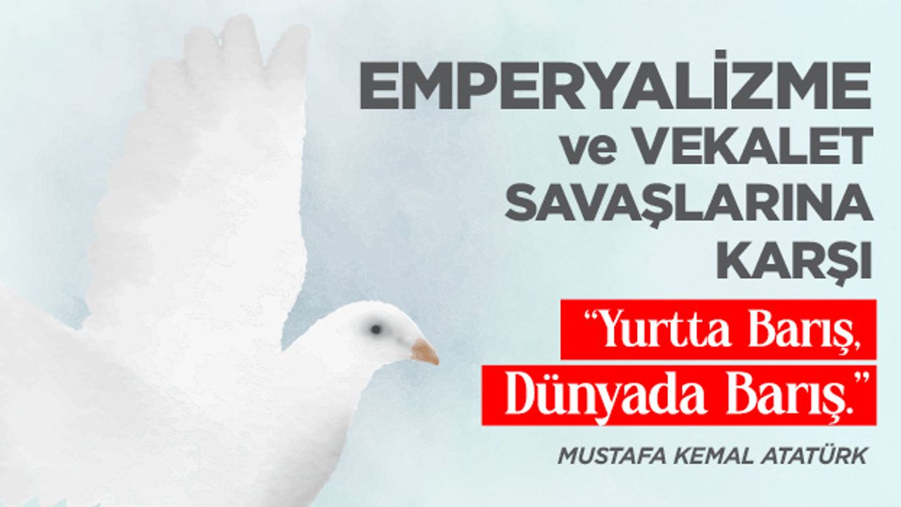 Büyük Önderimiz Mustafa Kemal Atatürk’ün “Yurtta barış, dünyada barış” ilkesini kendimize rehber alarak, bölgemizin emperyalist ülkeler tarafından yeniden dizayn edilmesini, enerji kaynakları ve jeopolitik çıkarlar uğruna savaş alanına çevrilmesini kabul etmiyoruz.