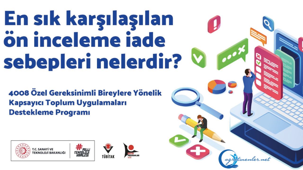 4008-Özel Gereksinimli Bireylere Yönelik Kapsayıcı Toplum Uygulamaları Destekleme Programının Başvuruları Devam Ediyor! Bu kapsamda ön inceleme aşamasında en sık karşılaşılan iade gerekçelerini sizler için derledik! Son Başvuru Tarihi: 5 Ocak 2026 http://bilimtoplum-pbs.tubitak.gov.tr