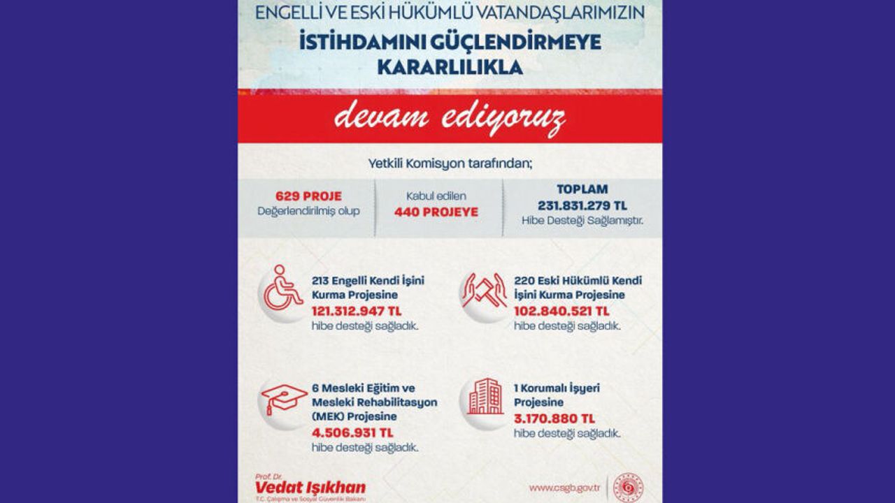 Engelli ve eski hükümlü vatandaşlarımızın istihdamını kararlılıkla güçlendirmeye devam ediyoruz.