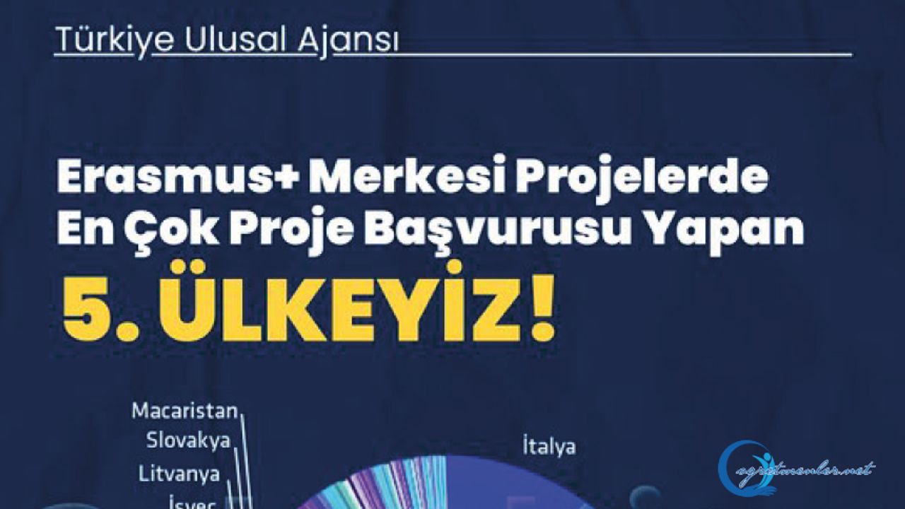 Erasmus+ Merkezi Projelerde Avrupa Komisyonu'na doğrudan 10.594 proje başvurusu sunulurken ülkemiz %6.4’lük pay ile başvuru sayısı bakımından 5.* ülke oldu. Bu başarı tablosunun oluşmasında katkısı olan herkese teşekkür ederiz. *:Dünyadaki 205 ülke belirli türdeki Erasmus+ merkezi projelerine başvurma hakkına sahiptir.