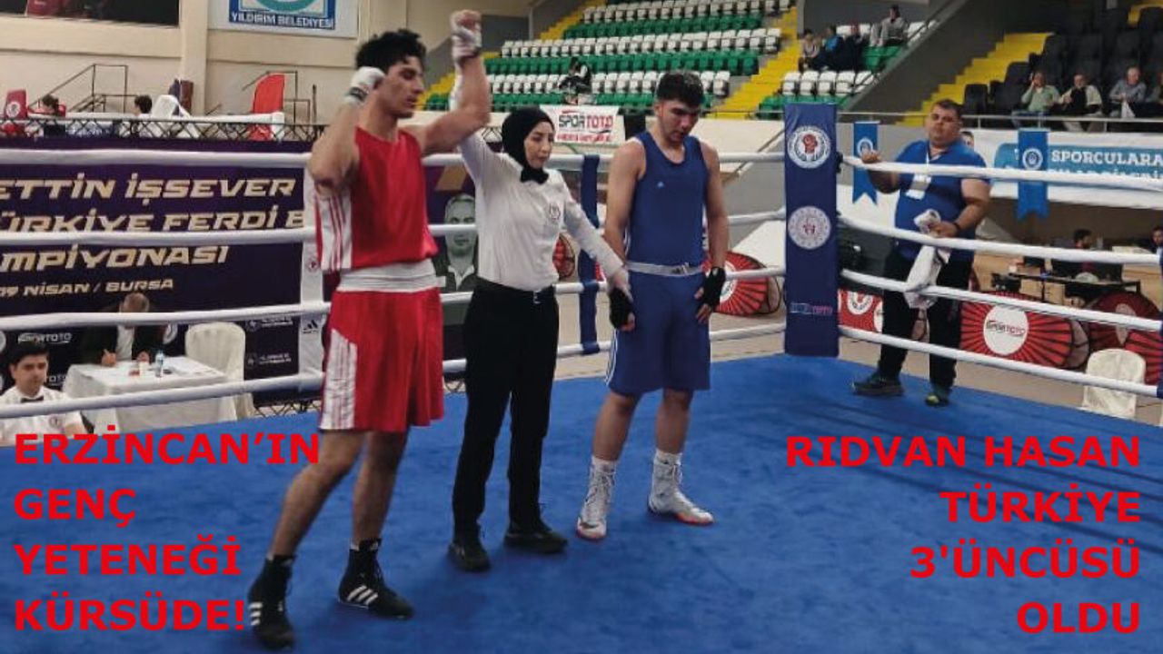 Bursa’da düzenlenen Vahdettin İşsever Gençler Türkiye Ferdî Boks Şampiyonası’ndan şehrimize sevindirici bir haber daha geldi. Erzincan’ımızın yetiştirdiği genç yeteneklerimizden Rıdvan Hasan, 80 kg kategorisinde ringe çıkarak büyük bir azimle Türkiye 3'üncüsü