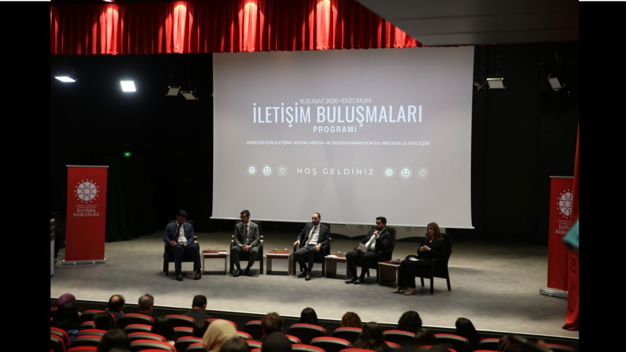 Cumhurbaşkanlığı İletişim Başkanlığımız tarafından Erzurum'da Atatürk Üniversitesi İletişim Fakültesi öğrencilerine yönelik, "Gençler için iletişim, sosyal medya ve dezenformasyon ile mücadele" konulu söyleşi düzenlendi.