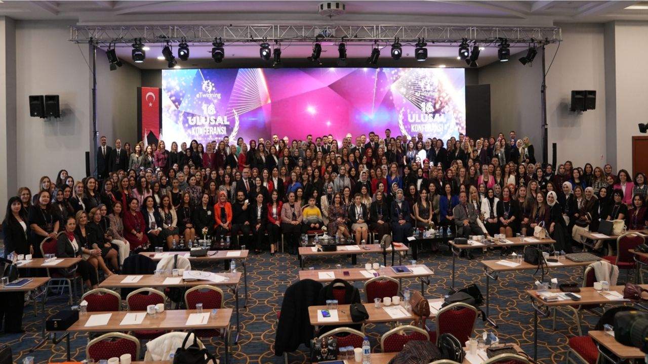eTwinning 16. Ulusal Konferansı Antalya’da! 295 öğretmen bir araya geldi; Türkiye’nin 45 ülke arasında 1. olduğu vurgulandı. İlk gün: 11 ödül • İlham veren konuşmalar Yeni nesil panel • “Göç” tiyatrosu 30 proje standı Eğitimin dönüşüm noktasındayız!