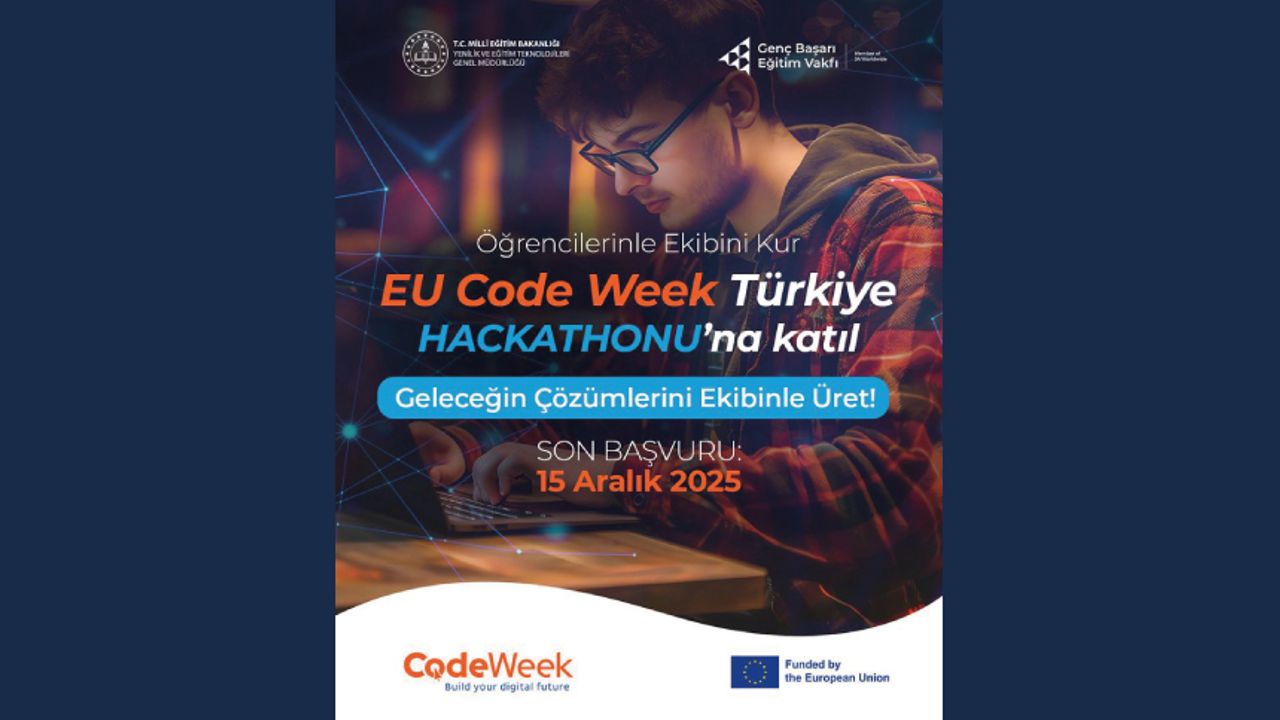 EU Code Week Türkiye Hackathonu başvuruları başladı! Öğretmen–öğrenci ekipleri; geleceğin meslekleri, sağlık, tarım, sürdürülebilirlik ve eğitim temalarında proje geliştirecek.