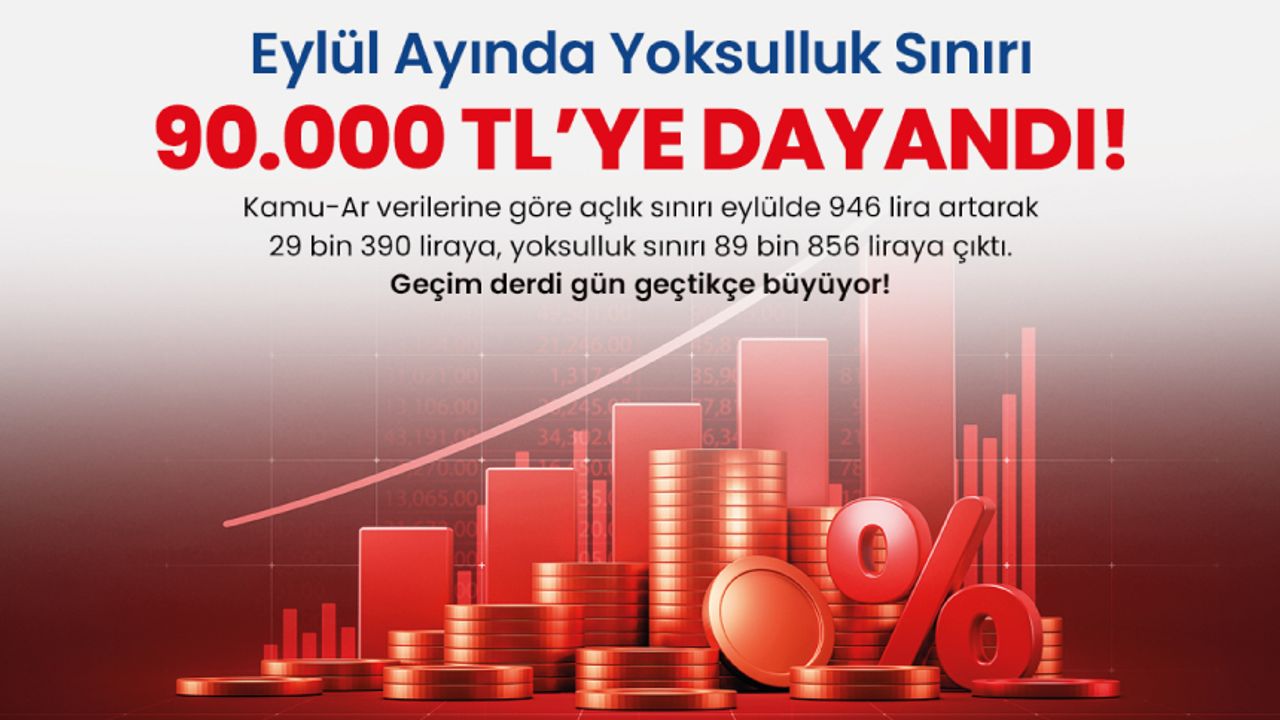 - YOKSULUK SINIRI İSE GIDANIN YANI SIRA DİĞER İHTİYAÇLARA YÖNELİK HARCAMALARDA YAŞANAN ARTIŞLARININ DA ETKİSİYLE 89 BİN 856 LİRA DÜZEYİNE ÇIKTI VE 90 BİN LİRA SINIRINA DAYANDI.