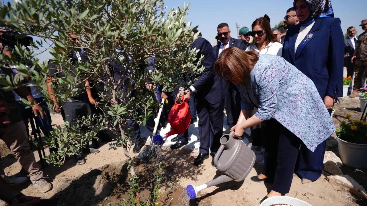 Gaziantep Büyükşehir Belediyesi, kardeş şehir Bağdat’ta oluşturulan Türkiye Bahçesi’ne dikilmek üzere 5 bin zeytin ve incir fidanı hediye etti.GAZİANTEP (İGFA) - Irak’ın başkenti Bağdat’a, kardeş şehir ilişkilerini geliştirmek ve başta teknik iş birliği olmak üzere birçok alanda temaslarda bulunmak amacıyla giden Gaziantep Büyükşehir Belediye Başkanı Fatma Şahin, Zevra Parkı’ndaki Türkiye Bahçesi’ne dikilmek üzere 5 bin zeytin ve incir fidanı takdim etti. Parkın Türkiye Bahçesi bölümünde, Gaziantep’e özgü mimari unsurlar, bitki çeşitliliği ve peyzaj düzenlemeleri ile kardeşlik temasını yansıtan sosyal alanlar yer alıyor.
