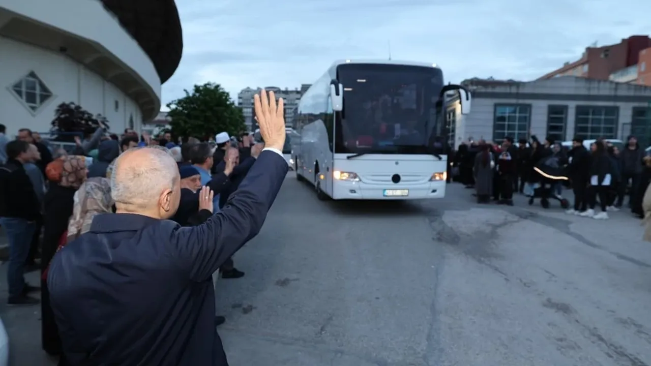 Tören sonunda hacı adayları hac vazifelerini yerine getirmek için kutsal topraklara doğru yola çıktı.