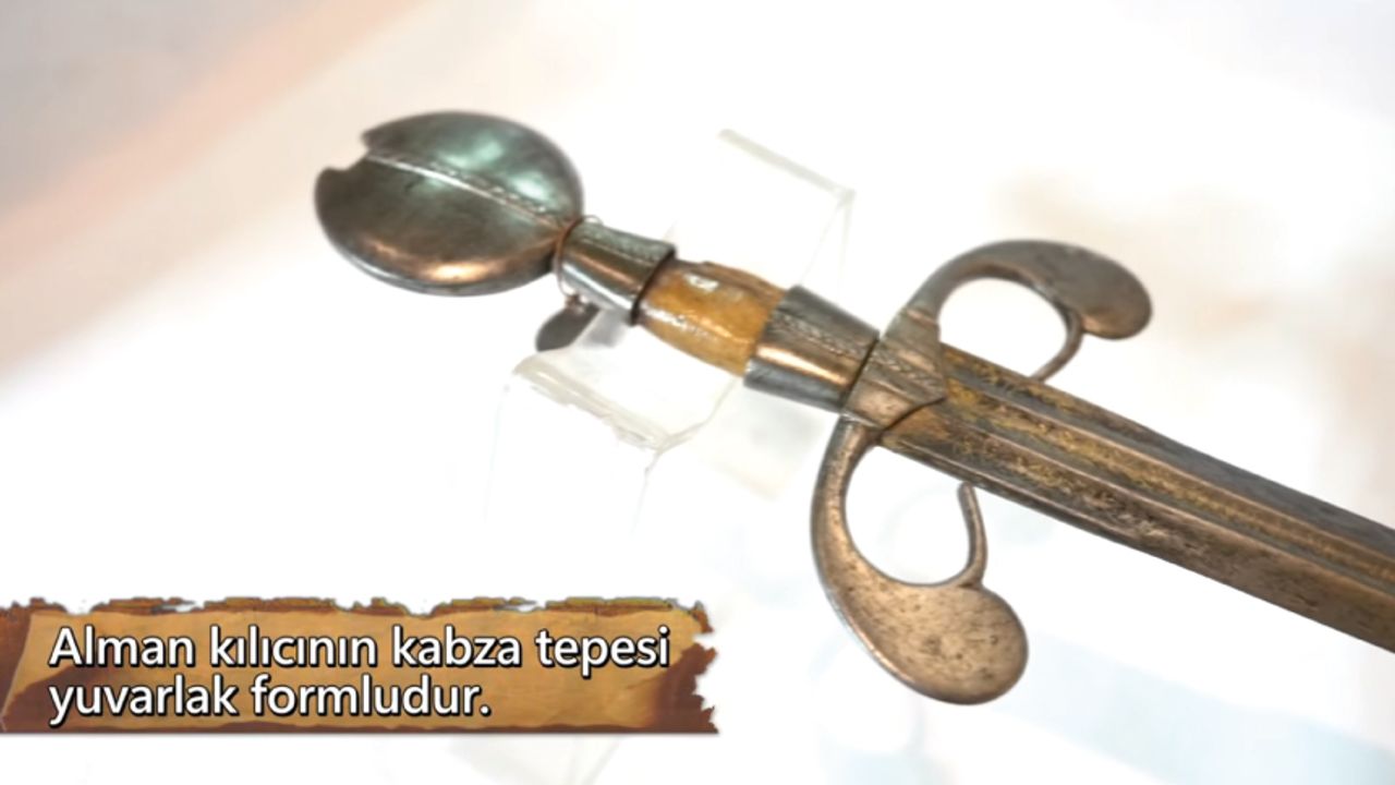 Kabza tepesi yuvarlak formlu, düz ve iki ağızlı namlusu ile dikkat çeken; her iki yüzündeki oluklu yapısıyla tarihî detaylar barındıran “Alman Kılıcı”, Harbiye Askerî Müzemizde sergilenmektedir. Tarihle iç içe bir yolculuk yapmak ve bu nadide eseri yakından görmek isteyen tüm tarihseverlerimizi Müzemize bekliyoruz.