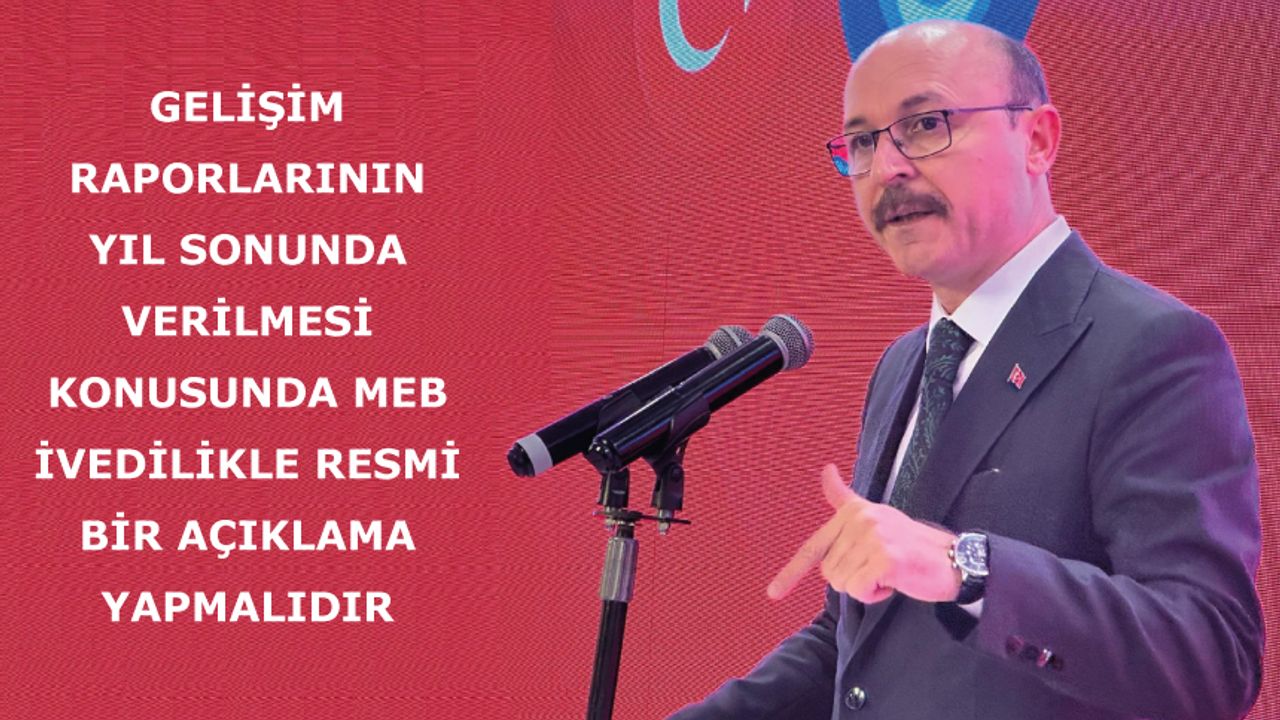 Öte yandan basına yansıyan haberlere göre; Antalya’da gerçekleştirilen İl Müdürleri Toplantısı’nda, ortaokul ve lise düzeyinde öğrenim gören 5, 6, 9 ve 10. sınıf öğrencileri için karnenin yanı sıra, öğrencilerin zihinsel ve sosyal-duygusal gelişimlerini içeren gelişim raporlarının tüm kademelerde yalnızca eğitim-öğretim yılı sonunda hazırlanarak öğrencilere teslim edilmesi yönünde karar alındığı ifade edilmektedir. Bu, talebimizi tam olarak karşılamasa da şimdilik olumlu bir adımdır. Ancak, yıl sonu gelişim raporları hazırlanacaksa, içeriğinin sadeleştirilmesi konusunda da bir çalışma yapılmasını talep ediyoruz.