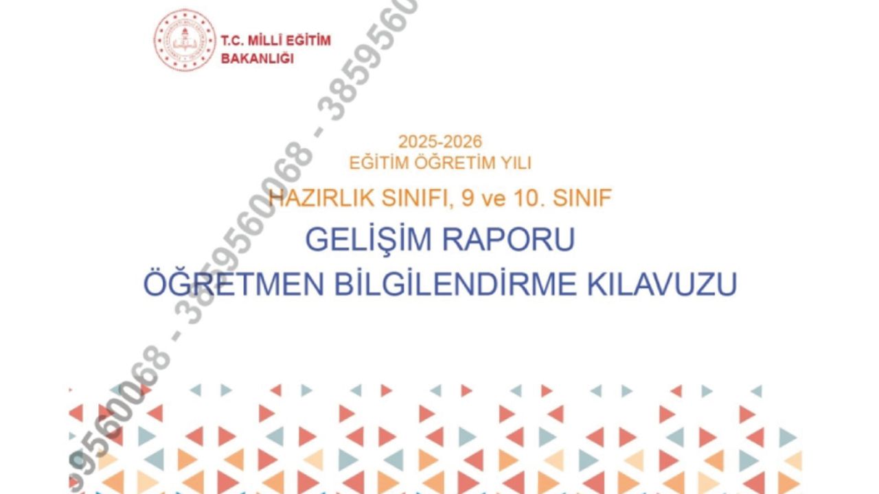 Gelişim raporu uygulamasının sağlıklı bir şekilde yürütülebilmesi ve öğretmenlerin süreci doğru bir şekilde yönetebilmeleri amacıyla "2025-2026 Eğitim Öğretim Yılı Hazırlık, 9 ve 10. Sınıf Gelişim Raporu Öğretmen Bilgilendirme Kılavuzu" hazırlanmıştır. Söz konusu kılavuzda gelişim raporunun amacı, kapsamı, değerlendirme ölçütleri, e-Okul sisteminde yapılacak işlemler ve açıklamaları detaylı bir şekilde yer almaktadır.