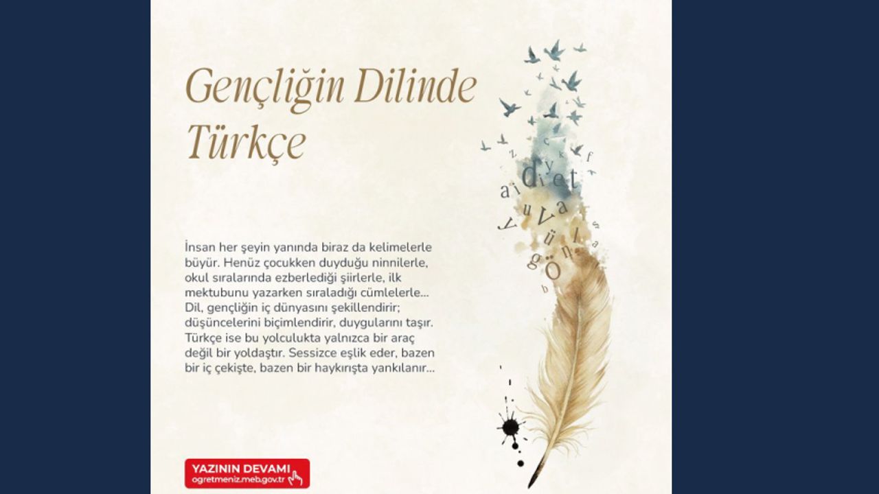 Dil, gençliğin iç dünyasını şekillendirir. Gülsüm YILMAZ'dan "Gençliğin Dilinde Türkçe" yazısı ÖğretmenİZ dergisinin 7. sayısında! Dilin bir kimlik meselesi olduğunu vurgulayan bu köşe yazısıyla gençliğin iç dünyasında bir yolculuğa çıkın! Okumak için http://meb.ai/UH2c0oy Sen de kalemini al, eserlerinle iz bırak! ÖğretmenİZ dergisinde yer al! Dergide yayımlanmasını istediğin çalışmalarını göndermek için https://meb.ai/9giDiI #öğretmeniz